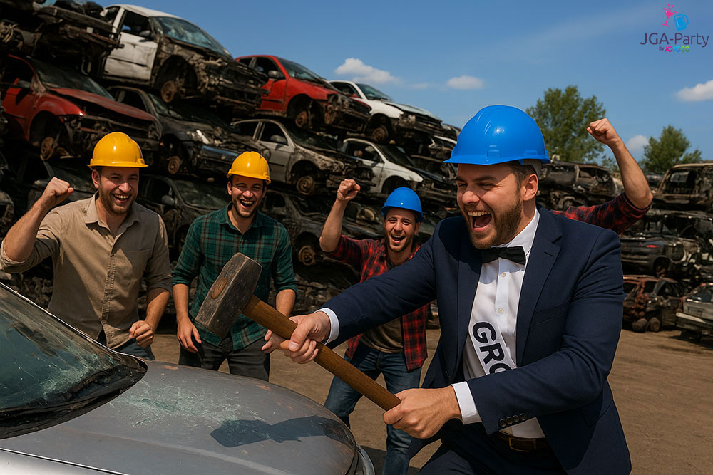Sichert euch euren Slot zum Auto zerstören in Berlin für den Junggesellenabschied und startet euer JGA-Party-Abenteuer mit Vollgas!
